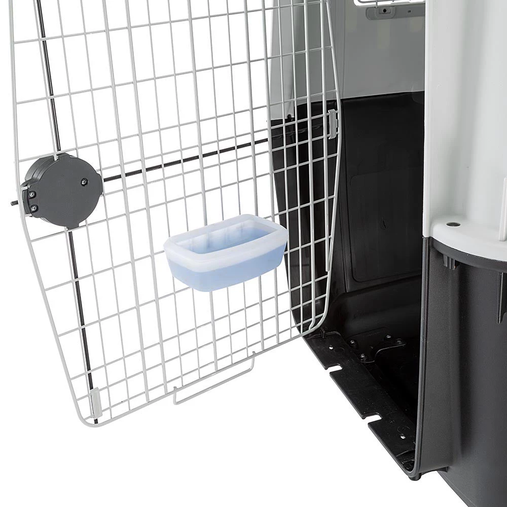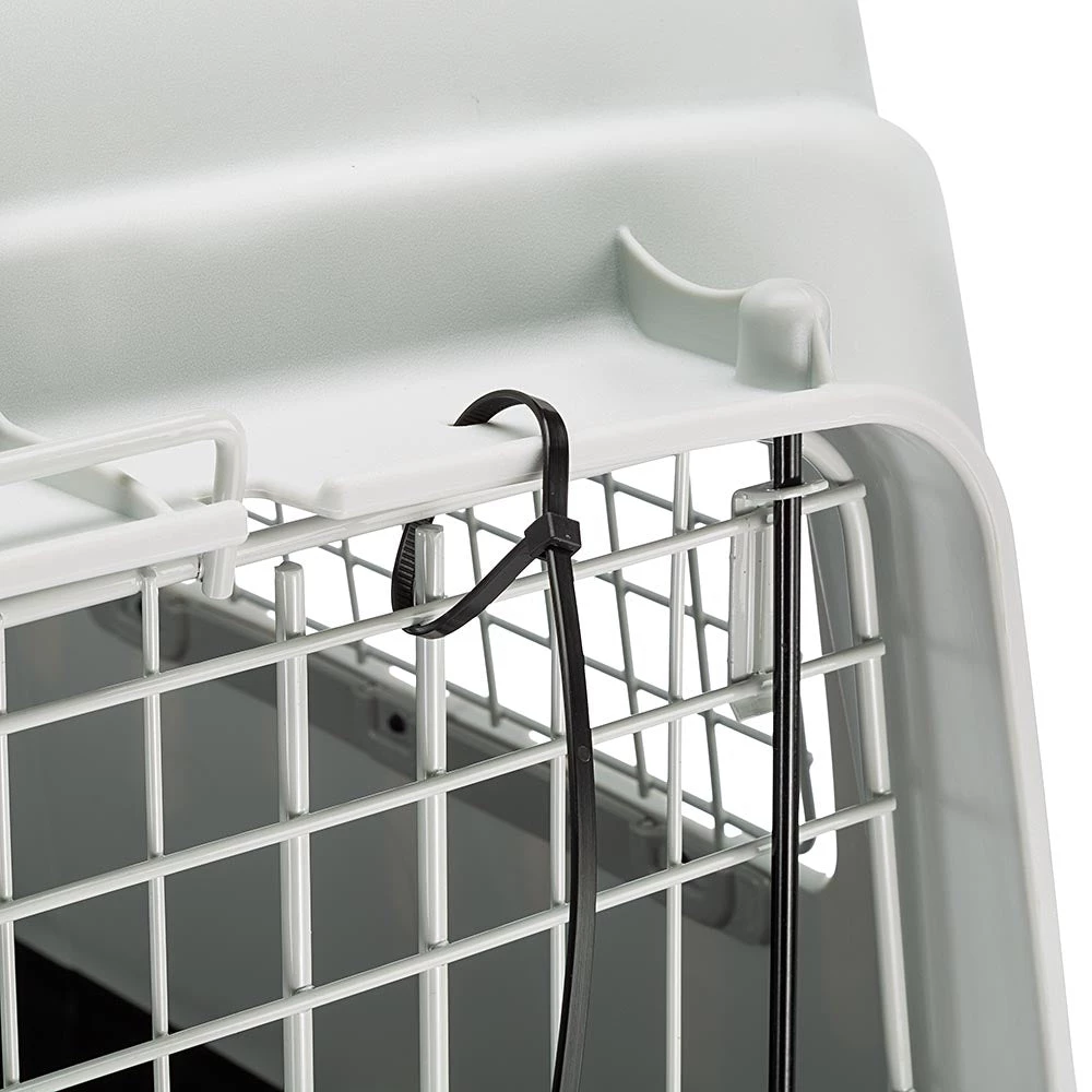 Die TĂŒr der Transportbox entspricht mit einem Gitterabstand von 25 x 25 mm den geltenden IATA-Vorschriften fĂŒr den Transport von Haustieren. AuĂerdem verfĂŒgt die Box ĂŒber vier praktische Seitengriffe, die ein einfaches Bewegen der Box ermöglichen.