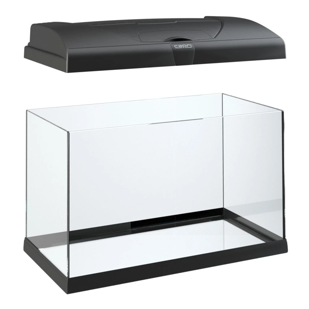 Die Capri-Aquarien haben einen wasserdichten Deckel, der nicht am Glastank fest angebracht ist, auf Feuchtigkeit und Spritzwasser geprĂŒft ist. Dort ist auch immer eine groĂe Klappe, die zur einfachen Wartung geöffnet werden kann. Generell sind Capri Aquarien fĂŒr SĂŒĂ- und Meerwassereinstellungen geeignet und in verschiedenen KapazitĂ€tsmodellen erhĂ€ltlich: 40, 60 und 100 Liter, in WeiĂ oder Schwarz.