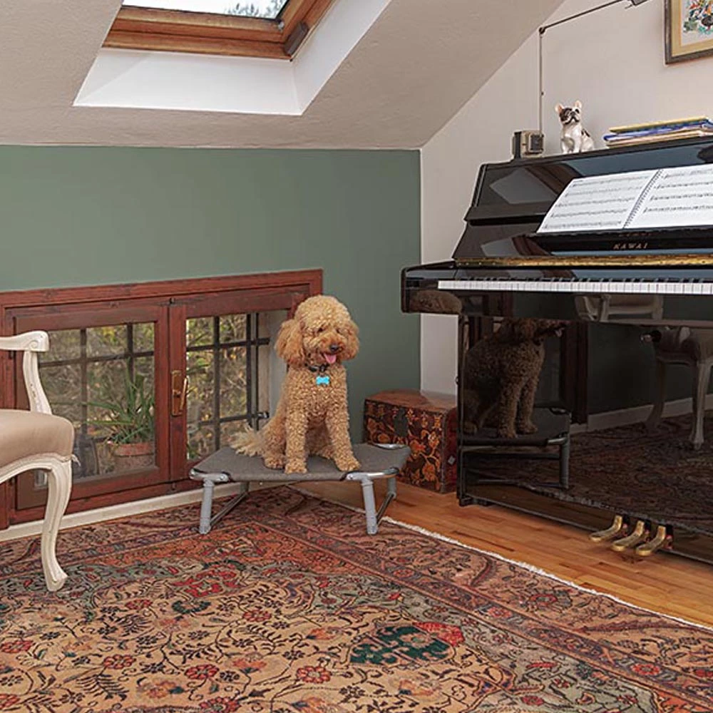 Ihre Haustiere werden auf dem Stoffbett, welches einen dichten Bezug und einen Aluminiumrahmen hat, angenehmere TrĂ€ume haben. Es ist perfekt fĂŒr eine Veranda, in einer Garage oder fĂŒr das Schlafen im eigenen Zimmer. Dieses Hundebett hat einklappbare FĂŒĂchen. Wenn es nicht benutzt wird, ist es gut zu verstauen. Die BezĂŒge sind einzeln erhĂ€ltlich, ebenso wie die austauschbaren elastischen Seile, die den Bezug straff halten.