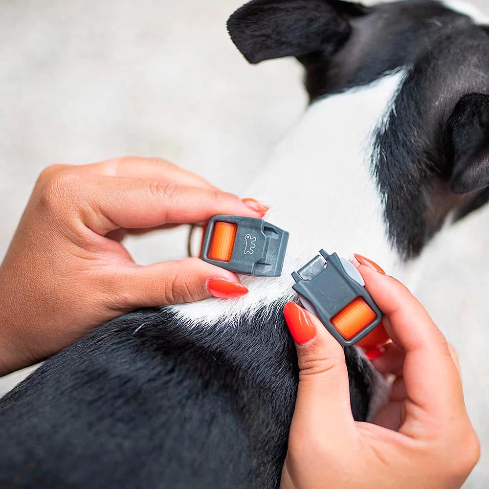 Ein weiteres wichtiges Merkmal der Evolution-HalsbĂ€nder ist die Schnalle mit dem Matic-Magnetverschluss-System: ein einfacher Klick und Sie sind fertig! Die revolutionĂ€re Matic-Technologie, ein exklusives Ferplast-Patent, das bereits in vielen FĂŒhrleinen eingesetzt wird, wurde nun auf die HalsbĂ€nder ĂŒbertragen, um das Ein- und Aushaken einfacher und schneller zu machen. Hergestellt aus Kunststoff, widerstandsfĂ€hig und gleichzeitig leicht, ist es mit zwei Verschlussknöpfen ausgestattet, die die Produktsicherheit garantieren und gleichzeitig ein versehentliches Ăffnen verhindern. Dies ist auch dank des Vorhandenseins eines internen Metallclips möglich, der eine gröĂere Robustheit des Produkts und eine ausgezeichnete Zugfestigkeit gewĂ€hrleistet.