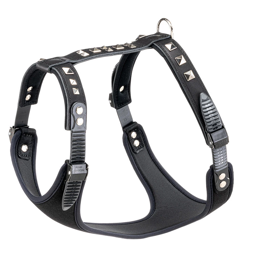 Diese Lederversion in schwarz hat einige kleine Metall-Applikationen in Form von Pyramiden und ist damit sehr originell und modisch. Ideal fĂŒr Hunde, die sich von den anderen unterscheiden wollen!