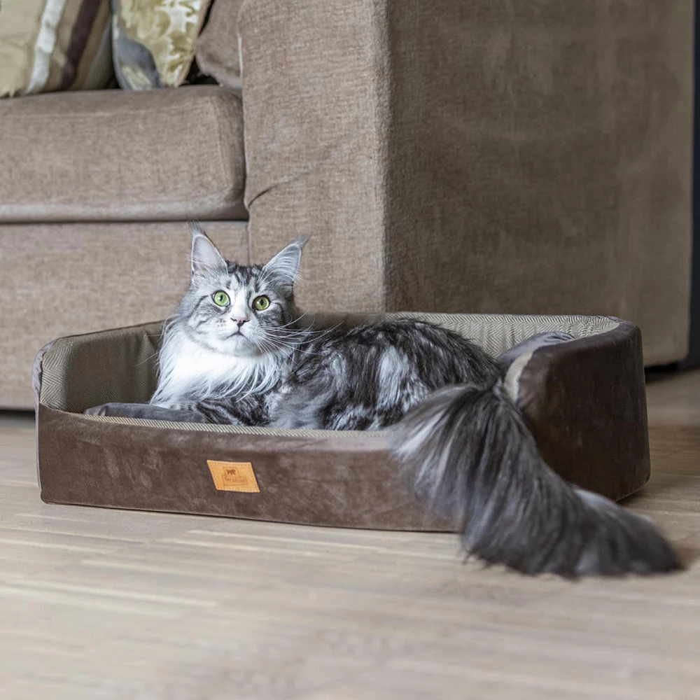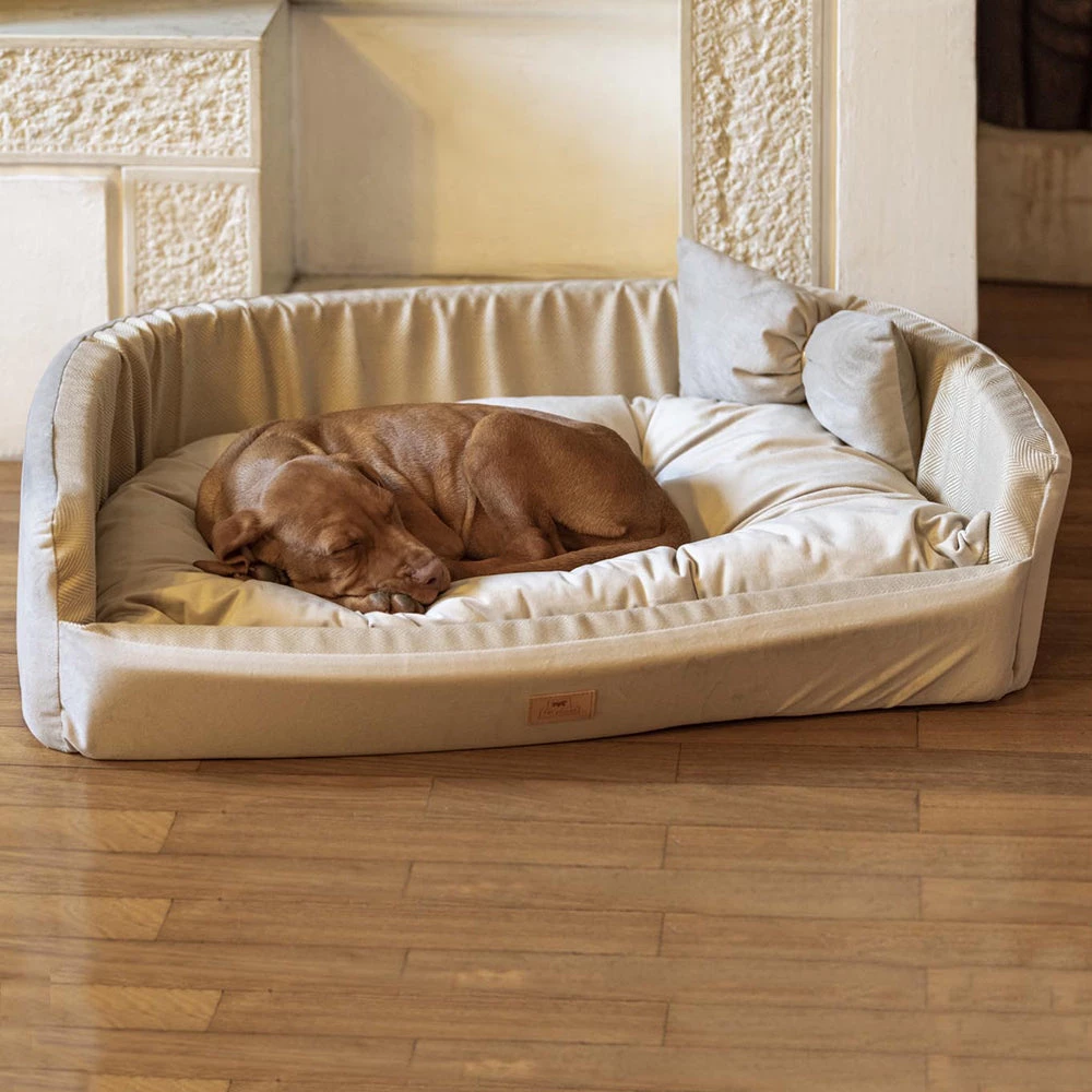 Das Harris-Stoffbett fĂŒr Hunde und Katzen ist dank seiner leicht abgerundeten Form mit gepolsterten Seitengittern und dem mitgelieferten bequemen Kissen perfekt geeignet, um Ihren tierischen Freunden angenehme Momente der Entspannung zu ermöglichen. Das Kissen, das zur Reinigung herausgenommen werden kann, ist doppelseitig, eine Seite in Stoff, die andere in elegantem Samt.