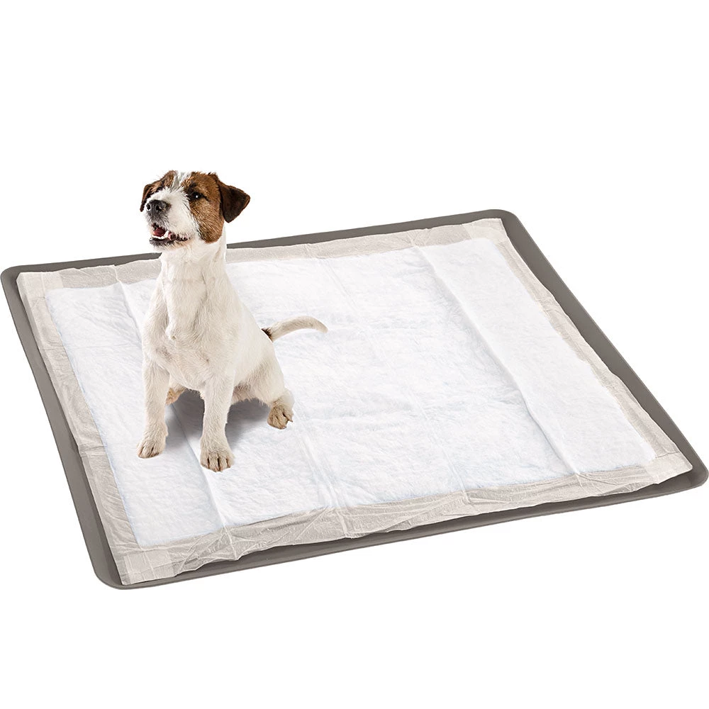 Diese schĂŒtzende Silikonmatte fĂŒr Hunde ist wirklich praktisch, perfekt, um die Umgebung hygienisch sauber zu halten. Entweder als Unterlage fĂŒr Futter- und WassernĂ€pfe, damit der Boden nicht verschmutzt wird, oder aber auch in Kombination mit dem speziellen saugfĂ€higen Hygieneunterlagen zur Welpenerziehung. Dank der leicht nach oben gebogenen Kanten bleiben Hygieneeinlagen von 60 x 60 cm fixiert, und Ihr Boden geschĂŒtzt. Sie ist die perfekte ErgĂ€nzung fĂŒr die Hygieneeinlagen Genico Basic und Genico Medium von Ferplast, die zusĂ€tzlich mit Klebstreifen ausgestattet sind und daher noch besser auf der Unterlage haften. Da das Protective Pad sich leicht zusammenrollen lĂ€sst und nur wenig Platz benötigt, ist es auch ideal auf Reisen! Die Hygieneeinlage und das Zubehör auf dem Foto sind nicht enthalten.