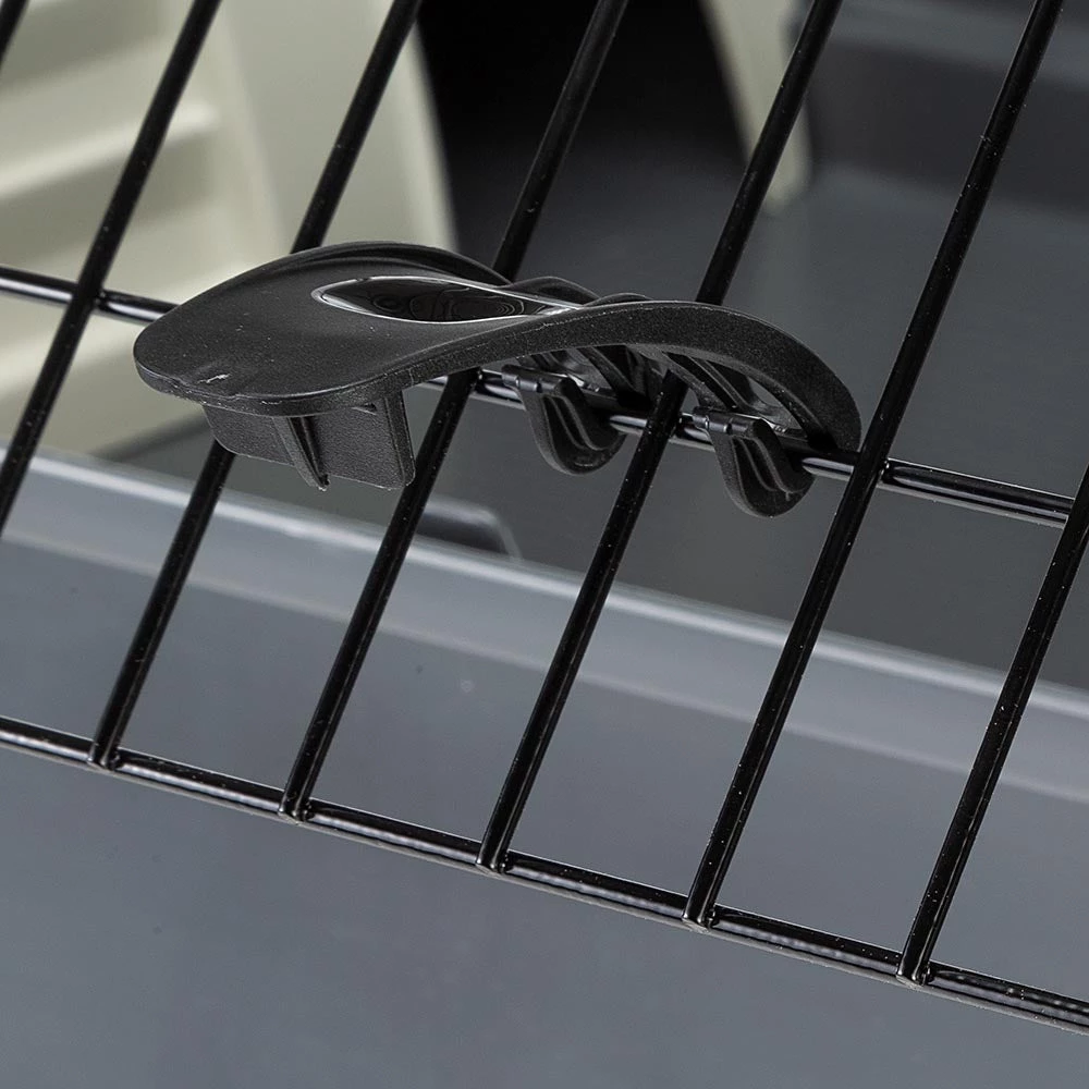 Rabbit 140 ist ein sehr gerÀumiger Kaninchenstall, ideal auch zur Haltung mehrerer Kaninchen. Er ist ausgestattet mit Zubehör, darunter zwei Kunststoff-Heuraufen, zwei Trinkflaschen und zwei FutternÀpfe. Zwei kleine HÀuschen mit oben aufgesetztem Futternapf bieten Ihren Tieren Schutz und Sicherheit. Die mitgelieferte Kunststofframpe ermöglicht es den Bewohnern den KÀfig selbststÀndig zu verlassen und zu betreten.