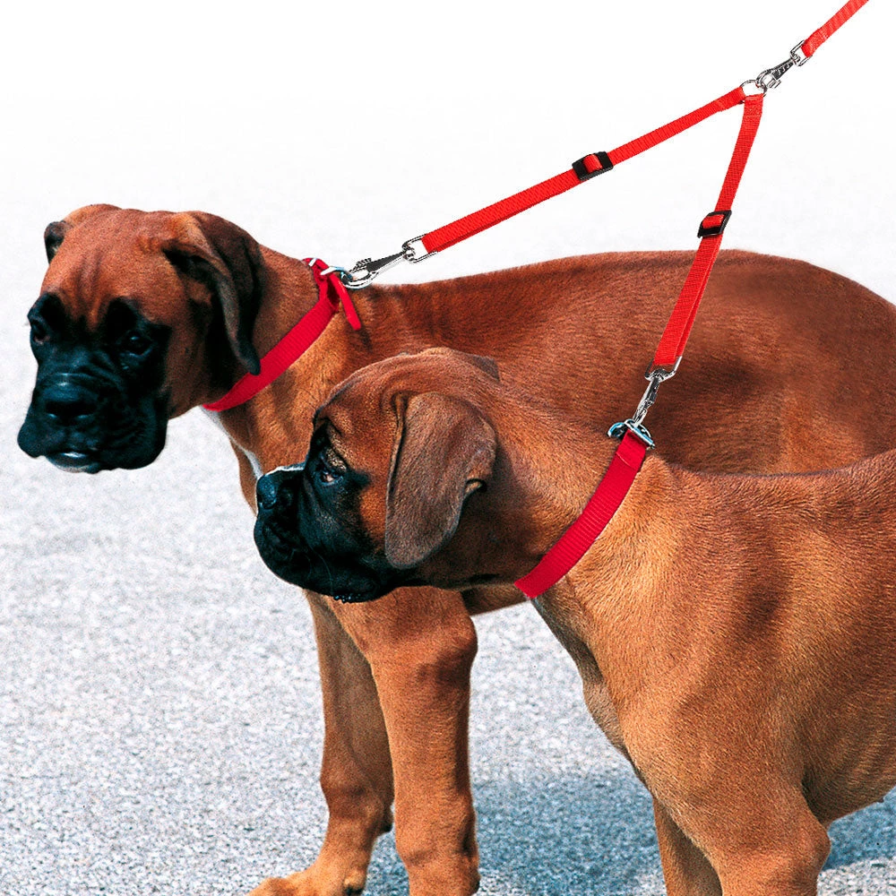 Twin ist eine Hundeleine aus Nylon, die verstellbar ist. Dank der zentralen Kunststoffschnalle ist die Leine ideal um mit zwei Hunden spazieren zu gehen.