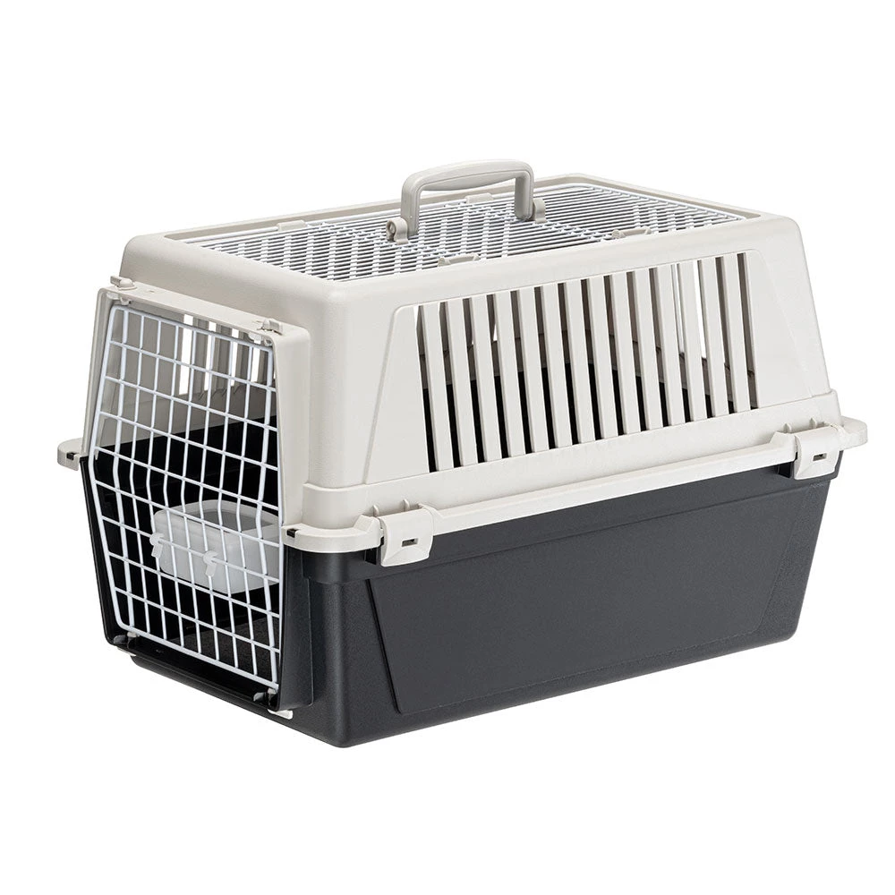 Die Transportbox Atlas Open ist fĂŒr kleine Hunde und Katzen gedacht und dank des praktischen Tragegriffes am Deckel einfach zu heben. Egal ob im Auto, Zug, auf dem Schiff oder im Flugzeug, in der aus stabilem Kunststoff gefertigten Atlas Open ist Ihr Liebling auf Reisen gut aufgehoben. Durch die GittereinsĂ€tze am Dach und an den Seiten kann Ihr vierbeiniger Freund alles um ihn herum beobachten und eine gute Luftzirkulation ist gewĂ€hrleistet. AuĂerdem kann man den Deckel im Dach aufklappen, damit Sie bei Bedarf schnellen Zugang zu Ihrem Haustier haben.