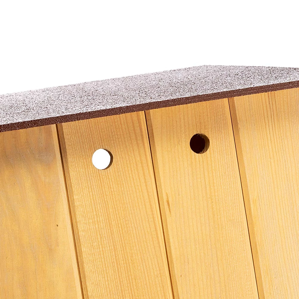 Die HaustierhĂŒtte Baita 40 ist mit KunststofffĂŒĂen ausgestattet, die eine Isolierung vom Boden gewĂ€hrleisten. Das Dach lĂ€sst sich leicht öffnen und schlieĂen, um Wartungsarbeiten durchfĂŒhren zu können. Die EingangstĂŒr des HĂ€uschens hat eine Stufenstruktur, die auch als bequeme Einstiegsleiter dient, und ist zum VerschlieĂen mit einem speziellen Sicherheitsschloss ausgestattet. Das BelĂŒftungssystem Vent Systems sorgt fĂŒr eine hervorragende Luftzirkulation im Inneren und verhindert so die Bildung von Feuchtigkeit.