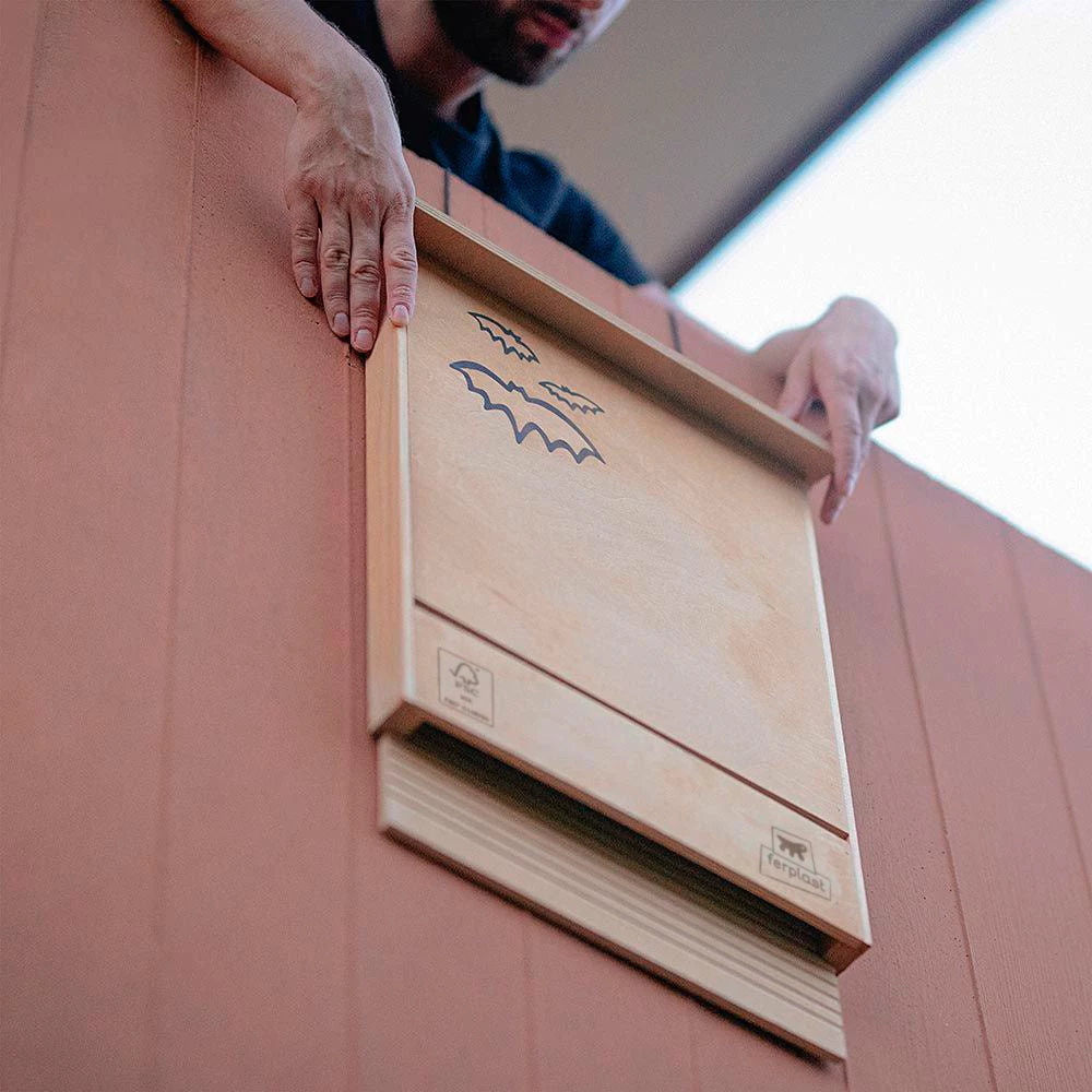 Hier ist ein natĂŒrlicher Weg, um lĂ€stige MĂŒcken loszuwerden! FledermĂ€use sind sehr nĂŒtzliche Tiere, die eine groĂe Anzahl von Insekten und MĂŒcken fressen. Sie können dieses Fledermaushaus an der AuĂenwand Ihres Hauses oder an einem Baum anbringen und bieten damit vor allem in der Zeit von April bis Oktober FledermĂ€usen ein gemĂŒtliches Heim. Hergestellt aus FSCâą -zertifiziertem Birkensperrholz, das aus WĂ€ldern stammt, die nach strengen ökologischen, sozialen und wirtschaftlichen Standards korrekt und verantwortungsbewusst bewirtschaftet werden und anderen kontrollierten Quellen, ohne die Verwendung schĂ€dlicher Klebstoffe und Farbstoffe, können die FledermaushĂ€user auch an einen Baum gehĂ€ngt werden. Am Besten in einer Höhe von ca. 4 Metern und mit den entsprechenden Metallhaken befestigen. Im unteren Teil hat das Haus einen speziellen Schlitz, aus dem die FledermĂ€use frei ein- und ausfliegen können.