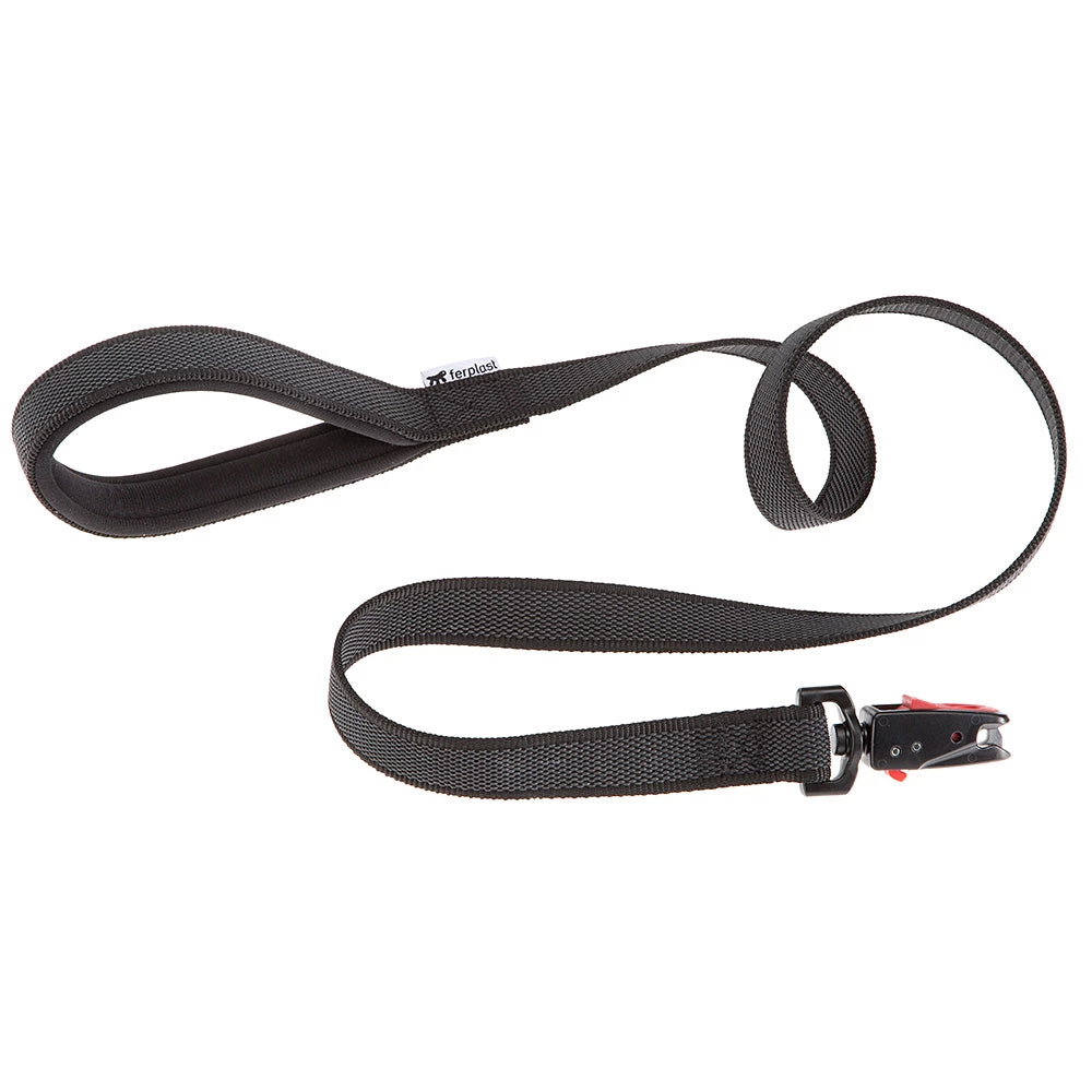 Der Karabiner ist leicht und gleichzeitig robust. Er besteht aus Technoplastik und bietet dank der Stahlstifte im Inneren einen perfekten Halt fĂŒr die Zugkraft des Hundes. Sicherheit auch Dank des Doppelknopf-Ăffnungssystems, das ein versehentliches Lösen verhindert.