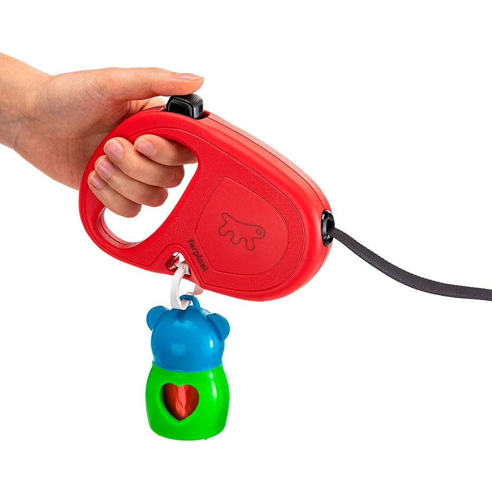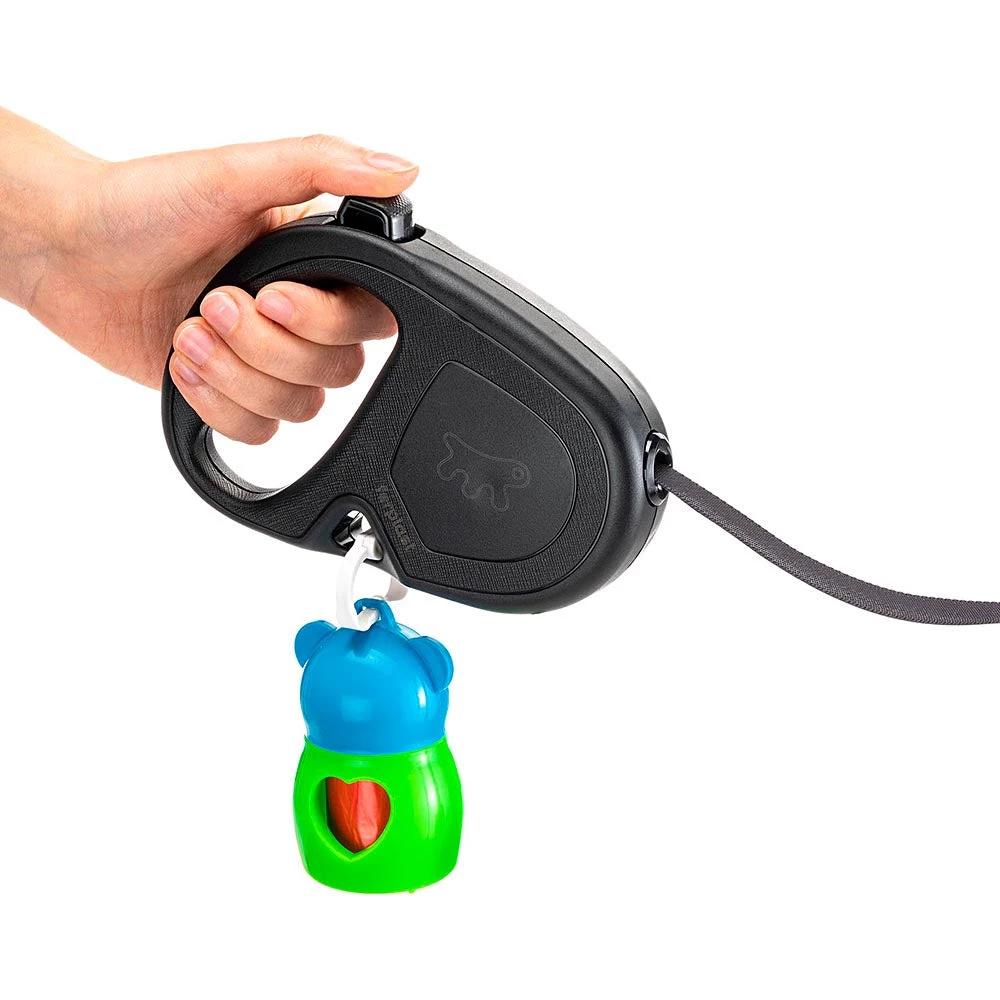 Die ausziehbare Leine Flippy One ist kompakt und leicht und verfĂŒgt ĂŒber einen ergonomischen und bequemen Griff. Das praktische Loch zum Einhaken des Hygienetaschenhalters ragt nicht heraus und ist in die Schale integriert, um keine Beschwerden zu verursachen und das bequeme Tragen dieser wichtigen Zubehörteile fĂŒr den Spaziergang zu ermöglichen.