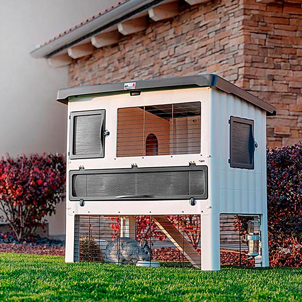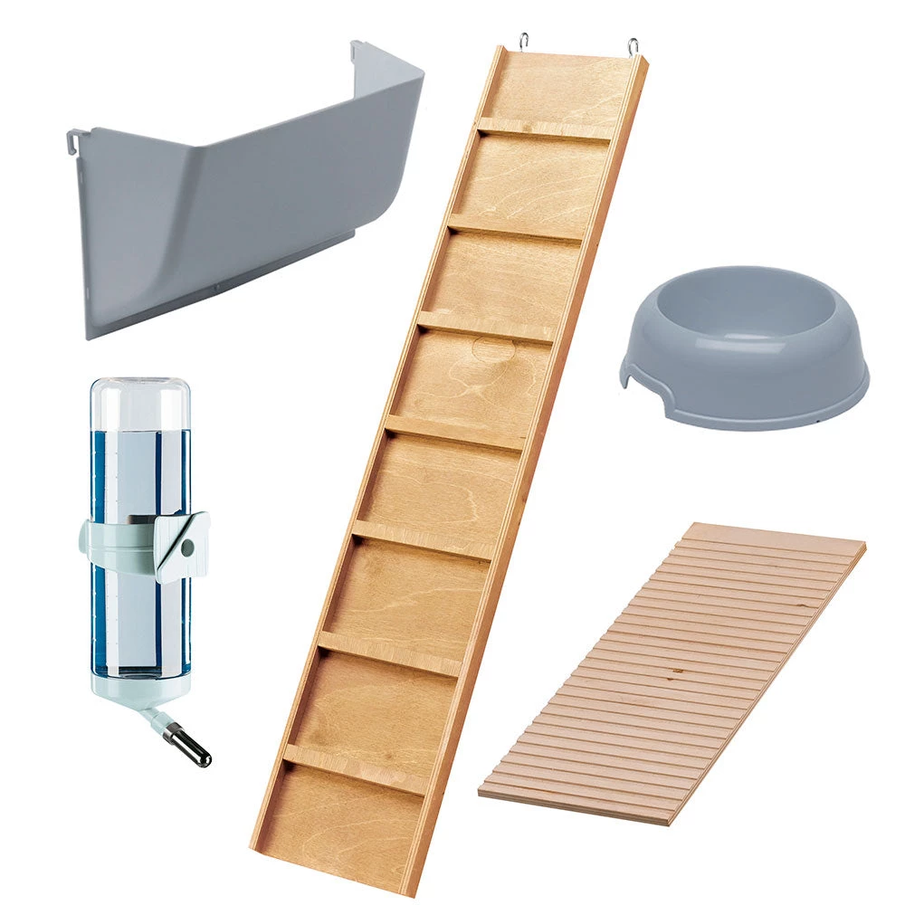 Grand Lodge 120 und 140 werden komplett mit Zubehör geliefert, wie der Futterstation, Futterschale und Holzleiter, ĂŒber die Ihr Hase leicht die oberen Etagen erreicht. Optionales Zubehör ist das passende Schutzrollo fĂŒr zusĂ€tzlichen Schutz oder das Isolationsset fĂŒr das Dach, welches den Hasen sowohl vor Hitze als auch vor KĂ€lte schĂŒtzt.