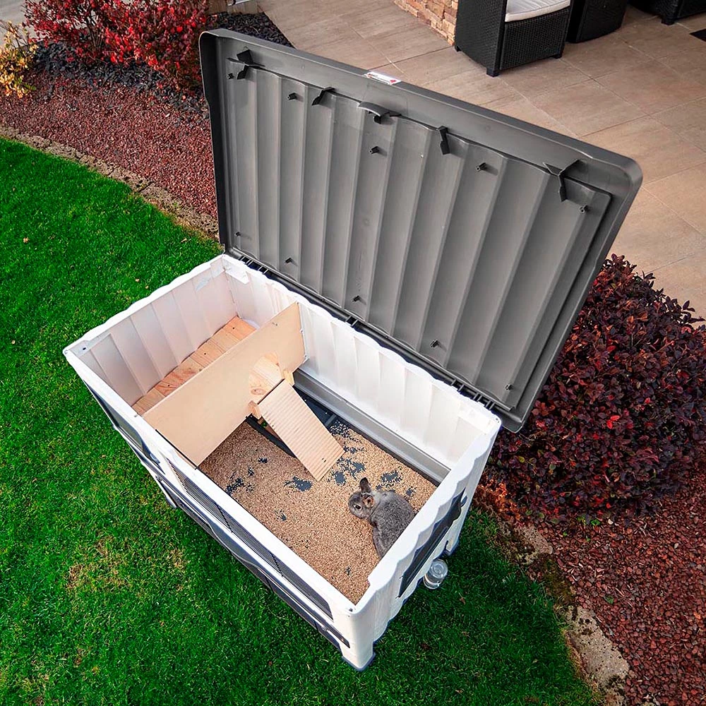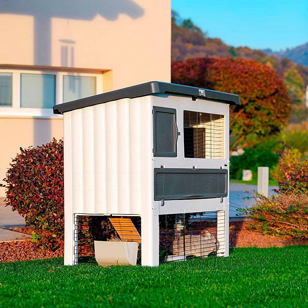 Alle Kunststoffheime Grand Lodge verfĂŒgen ĂŒber diegleichen innovativen, technischen Kennzeichen, die sie so sicher und komfortabel machen: im Inneren ein Hasenhaus mit HolzwĂ€nden und EingangstĂŒr, eine nĂŒtzlichen SeitentĂŒr und ein effizientes Verschlusssystem. Bei der Wartung/Reinigung hilft ein vollstĂ€ndig zu öffnendes Dach und die praktische Schmutzfangschale zum Ausziehen.