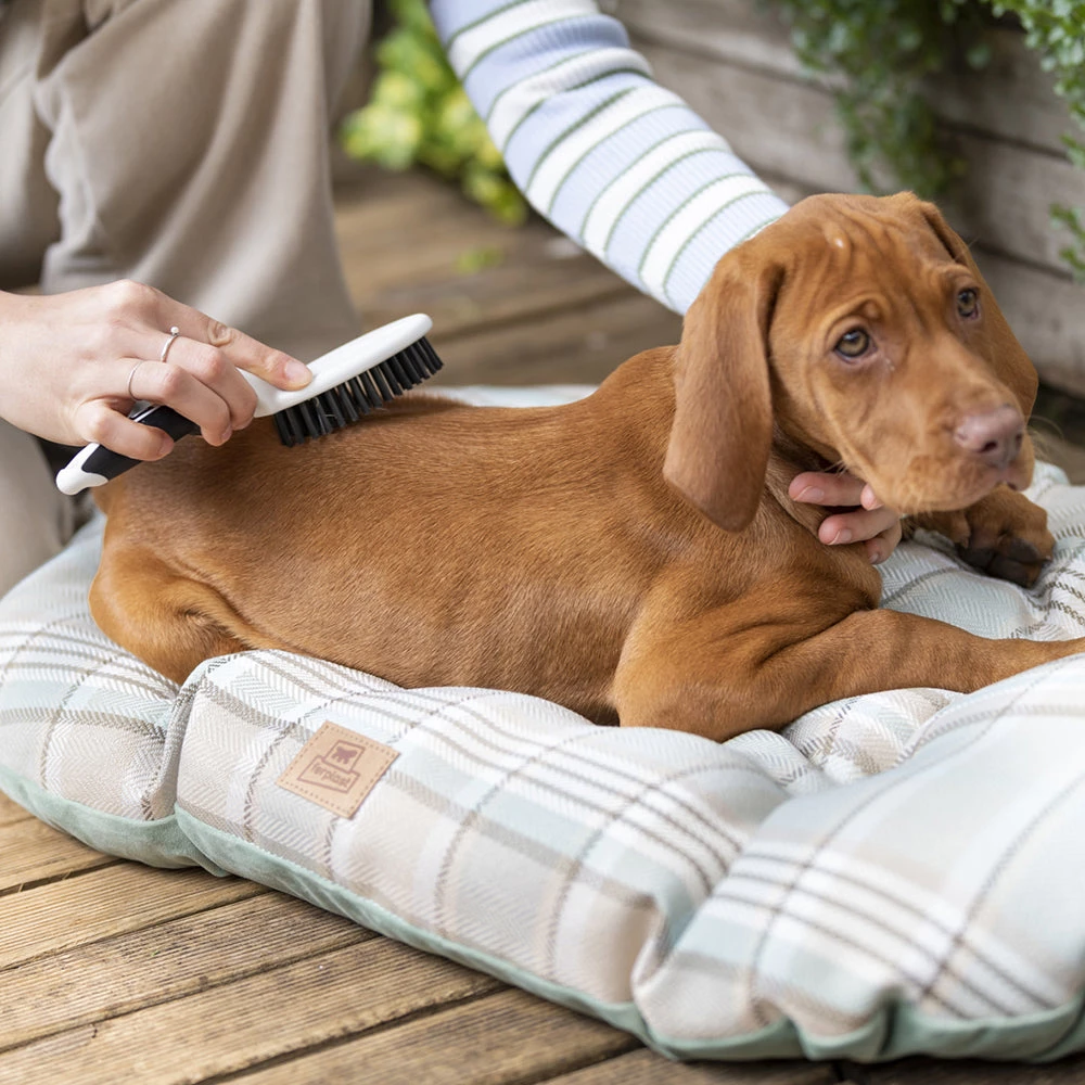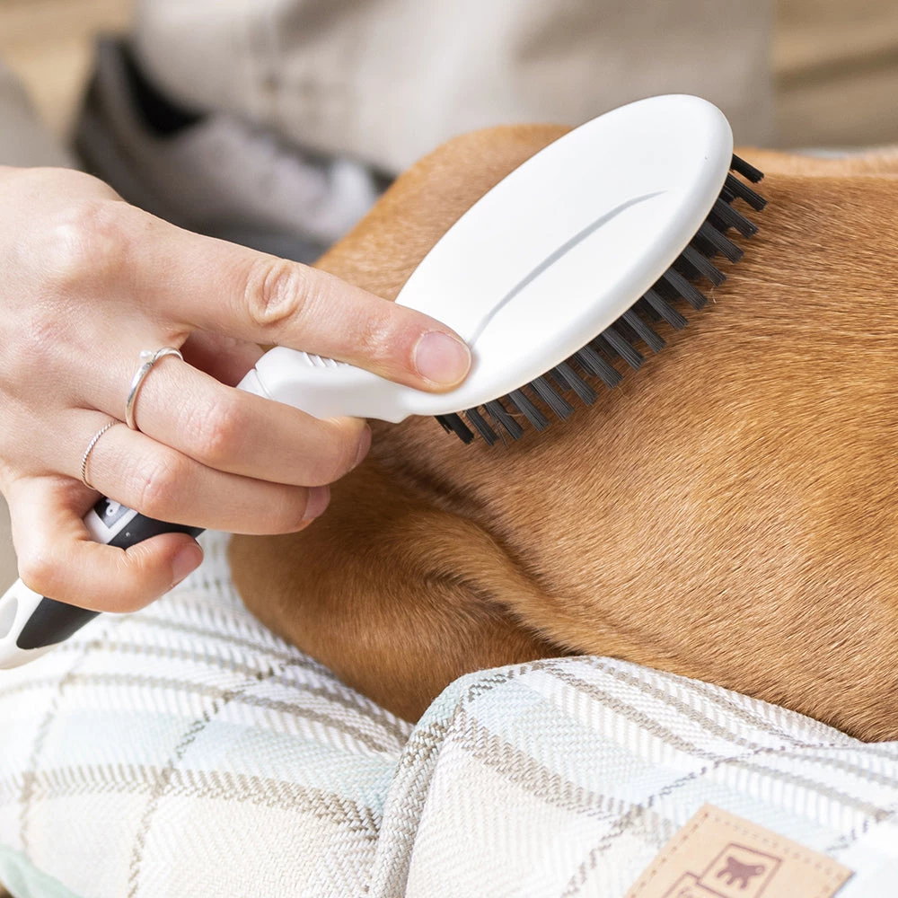 GRO 5759 ist eine ideale BĂŒrste fĂŒr alle Arten von Fell, kurz, mittel und lang. Perfekt, um das Fell Ihres Haustieres glĂ€nzend und weich zu pflegen. Sie ist mit Polyamidborsten ausgestattet, die stimulierend massieren und gleichzeitig einfaches KĂ€mmen ermöglichen. Ein unentbehrliches Werkzeug fĂŒr die grĂŒndliche, tĂ€gliche Pflege Ihres lieben Tieres: egal ob Hund, Katze und sogar Hase. Die BĂŒrste ist einfach in der Handhabung, dank des innovativen, ergonomischen Handgriffs, der mit Gummi bezogen ist und so fĂŒr ausgezeichneten Halt und maximalen Komfort sorgt. Aus strapazierfĂ€higem Materialien hergestellt hat dieses Produkt, wie alle aus der Grooming Premium-Produktpalette, eine lange Lebensdauer.