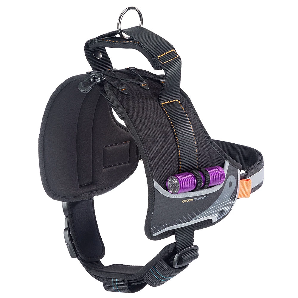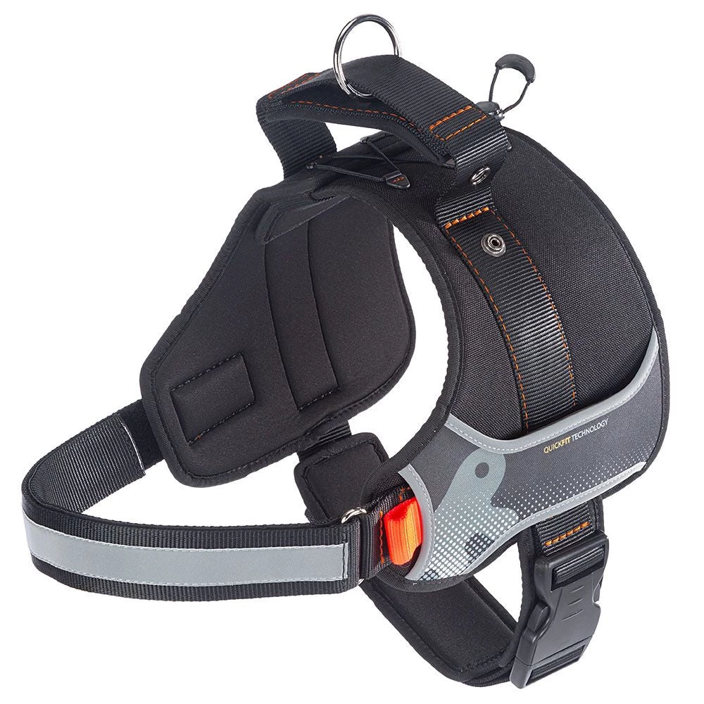 SchlieĂlich passen sie Ihrem Haustier perfekt, da sie sich leicht an seinen Körper anpassen; fĂŒr gröĂere Hunde (Modelle Large und Extra Large) ist das innovative Quick Fit-Mikroverstellsystem im Lieferumfang enthalten, bei dem ein Gummizug die einfache und schnelle Anpassung des Geschirrs auf dem RĂŒcken Ihres Hundes ermöglicht. Das spezielle ergonomische Design sorgt dafĂŒr, dass die Zuglast gleichmĂ€Ăig ĂŒber den Brustkorb Ihres Hundes verteilt wird, ohne seinen Nacken zu belasten oder Unbehagen zu verursachen.