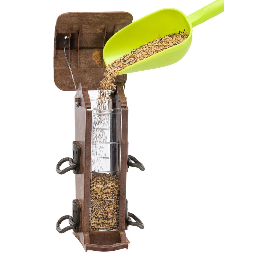 Der Futterspender fĂŒr drauĂen ist robust und aus wetterfesten, ungiftigen und recycelbaren Materialien gebaut. Er ist leicht zu reinigen und resistent gegen Parasiten, um maximale Hygiene zu gewĂ€hrleisten. Komplett mit Sitzstange und Schnur zur Befestigung an den BĂ€umen in Ihrem Garten. Er kann ohne Spezialwerkzeug in wenigen Minuten montiert werden.