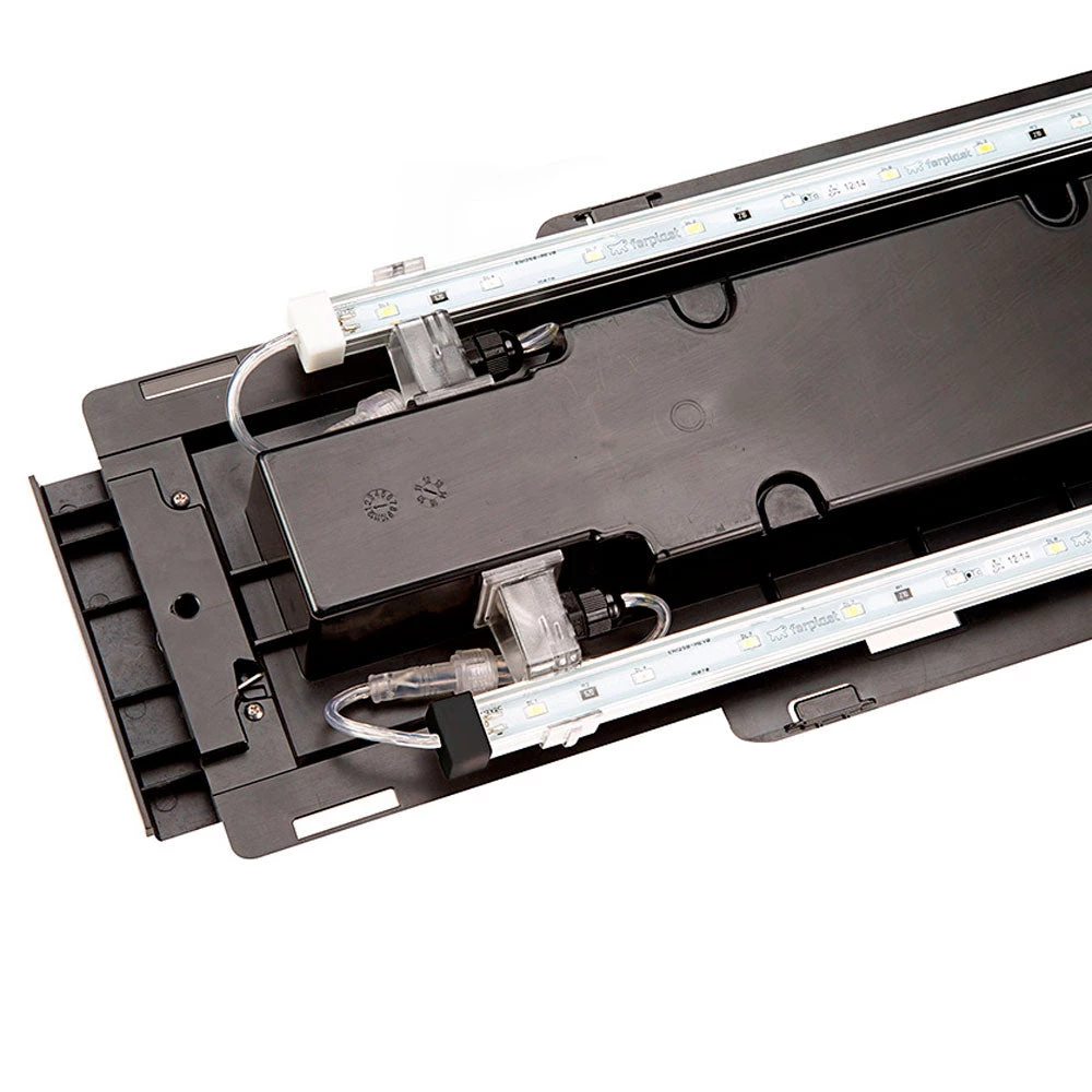 FĂŒr unsere Dubai Aquarien bieten wir eine Deckenleuchte mit LED an, die entweder die mit dem Tank gelieferte Lampe ersetzen oder mit dieser zusammen verwendet werden kann.