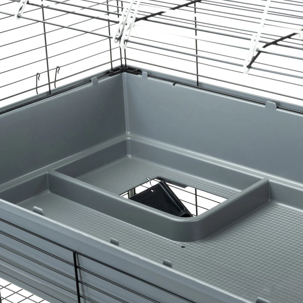 Rabbit 120 Tris ist mit einer groĂen FronttĂŒr ausgestattet, die vollstĂ€ndig geöffnet werden kann und fĂŒr tĂ€gliche Wartungsarbeiten sehr nĂŒtzlich ist. Die speziellen Verschlussklammern sichern die Konstruktion und sorgen somit fĂŒr mehr Sicherheit des Tieres, und auch die SchiebetĂŒren vermindern das Verletzungsrisiko fĂŒr das Tier.