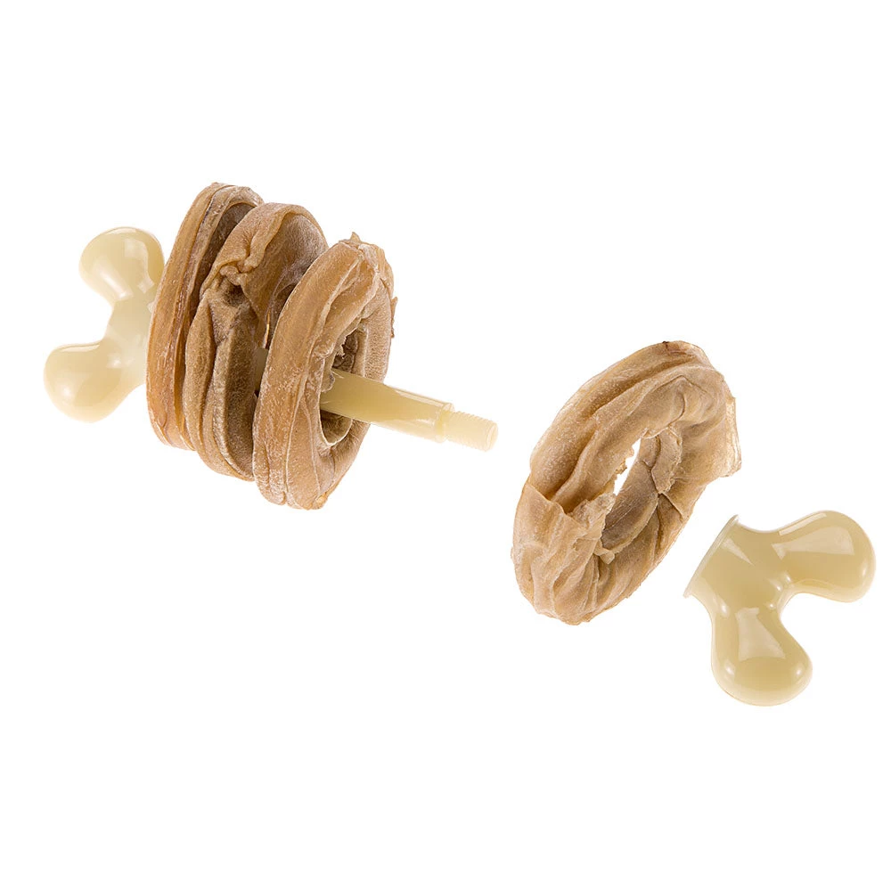 Hier ist ein Spielzeug fĂŒr Hunde, das Ihrem Freund eine angenehme Ăberraschung bietet: Es gibt Knabbereien fĂŒr Ihren Hund ab und kann auch mit anderen Arten von Futter wie Kauringen verwendet werden, die Sie leicht darin stapeln können. Aus thermoplastischem Gummi und Nylon wird es in verschiedenen GröĂen angeboten, PA 6390 und PA 6392, in der typischen Knochenform, die bei allen Hunden beliebt ist, zusammen mit einem praktischen perforierten BehĂ€lter fĂŒr Futter. Dank der Verwendung hochwertiger Materialien ist dieses Spielzeug widerstandsfĂ€hig und unbedenklich fĂŒr das Tier, sowie Ă€sthetisch ansprechend, dank der besonderen durchscheinenden Wirkung der farbigen Transparenz.
