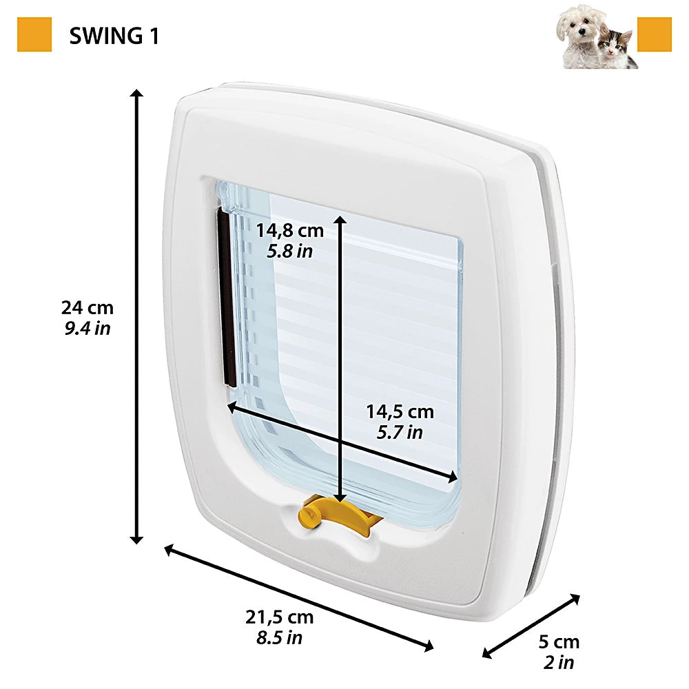 Dank der Ferplast Swing Produkte können Sie die Klappe exklusiv fĂŒr Ihren vierbeinigen Freund an jeder Holz-, Metall- oder GlastĂŒre sowie an ZiegelwĂ€nden anbringen. FĂŒr Katzen und Welpen empfehlen wir die Modelle Swing 1, 3 oder 5. FĂŒr mittelgroĂe bis groĂe Hunde, sowie fĂŒr groĂe Katzen, sind die Modelle 11 und 15 empfehlenswert. Das Modell Swing 7 ist mit einem Magnetsystem ausgestattet und fĂŒr Katzen perfekt geeignet. Die Klappen werden mit dem innovativen Windstopper-System, welches Schutz vor Zugluft (mit Ausnahme der Modelle Swing 1 und 3 ) bietet, geliefert. Ein weiterer wichtiger Bestandteil ist das 4 -Wege -Verschluss-System (nicht im Swing 1 Modell enthalten), mit dem Sie die Art der Ăffnung auf Ihre BedĂŒrfnisse anpassen können: Nur Einstieg, nur Ausstieg, Ein- und Ausstieg oder geschlossen. Der Durchgangsindikator wird Ihnen anzeigen (im Modell Swing 5), ob sich Ihr Haustier innerhalb oder auĂerhalb des Hauses befindet. Dieser besteht aus einem Flag, der auf der Unterseite der Katzenklappe angebracht ist und zeigt gleichzeitig die Richtung an, in die sich Ihr pelziger Freund zuletzt bewegt hat. Alle gröĂeren Klappen sind mit einem Tunnel ausgestattet, so dass die Klappe an jede Struktur angebracht werden kann. FĂŒr das Modell Swing 5 und die Modelle Swing 1 und 3 fĂŒr kleinere Haustiere, ist eine neue modulare Erweiterung des Tunnels als Zubehör erhĂ€ltlich. Dieser geht 5 cm in die Tiefe (Schrauben sind nicht enthalten). Wir empfehlen Ihnen vor dem Einbau in Glaskonstruktionen einen Glaser zu befragen, da es nicht möglich ist, Löcher in Sicherheitsglas oder Doppel-Verglasung zu bohren.