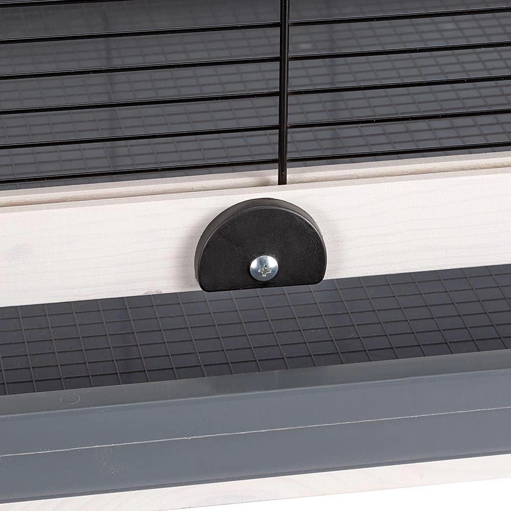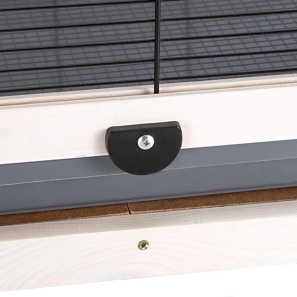 Die Voliere verfĂŒgt ĂŒber eine groĂe FronttĂŒr, die mit einem Sicherheitshaken ausgestattet ist, und einige Seitenklappen, nĂŒtzlich fĂŒr die tĂ€glichen Wartungsarbeiten.